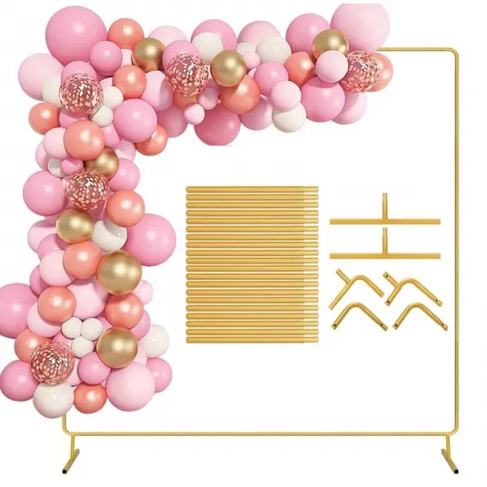 Set stand decor pentru baloane, WALALLA, patrat, rezistent, cu accesorii, pentru ceremonie petrecere/aniversare/aniversare, 200×200cm, metal
