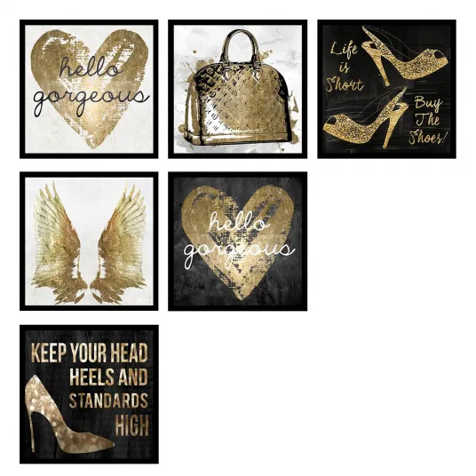 Set tablouri decorative Vavien Artwork, Model 21, rama MDF, 6 bucati: 30x30 cm