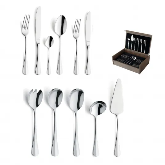 Set tacamuri 78 piese Amefa Baguette in cutie lemn, otel inoxdabil 18/10, 2.5mm