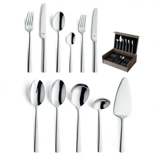Set tacamuri 78 piese Amefa Moderno in cutie lemn, otel inoxidabil 18/10, 2.5mm