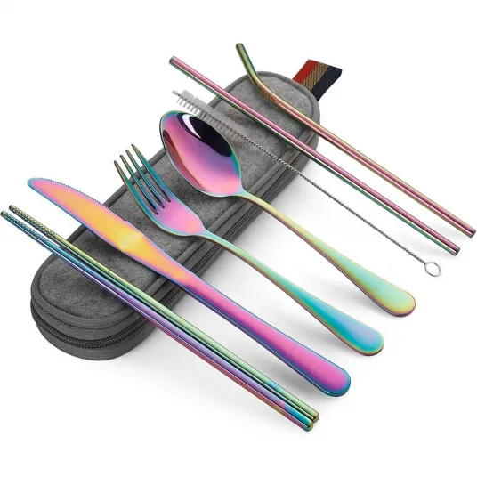 Set tacamuri inox, Quasar & Co.®, pentru birou, calatorii, camping, 7 piese in husa depozitare, 24 x 7 cm, fade