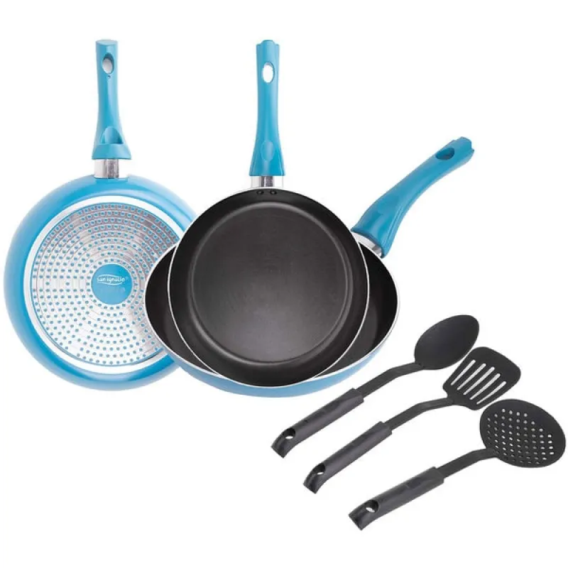 Set tigai SAN IGNACIO Zahara, 3 piese, 18-26cm, aluminiu, albastru + 3 ustensile bucatarie