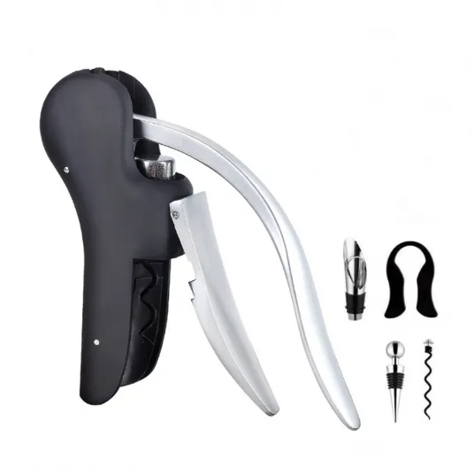 Set tirbuson/accesorii, 5 Piese, Negru/Argintiu