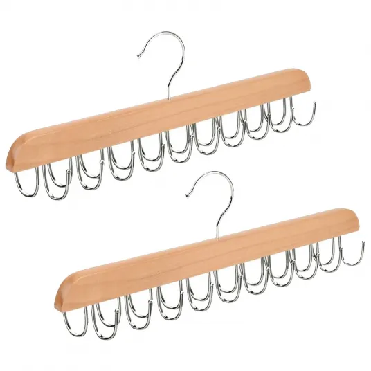 Set Umerase din Lemn, Darklove, 20 in 1, 2 bucati, Carlig standard argintiu, Lungime 37 cm, Rotire 360 grade, Economisire pana la 80% din spatiu, Greutate maxima de sustinere 5 kg, Lemn/Otel inoxidabil, Maro/Argintiu