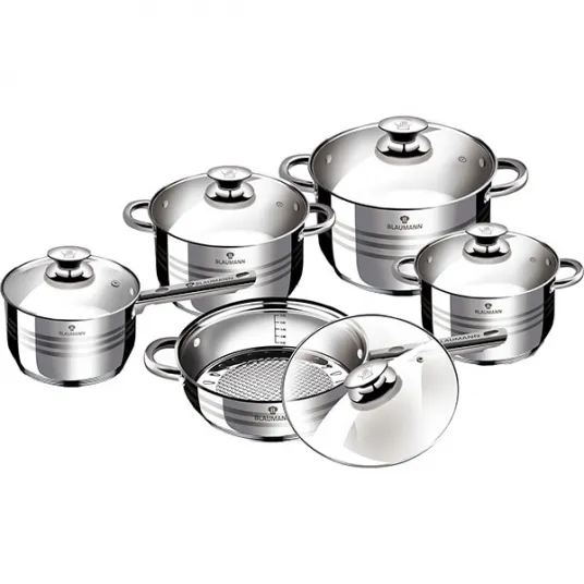 Continut pachet3 x Oala, 1 x Cratita; 1 x Cratita pentru fiert la abur; 5 x Capac de sticla