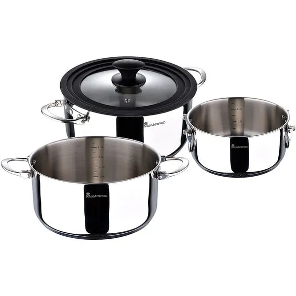 Set vase MASTERPRO Foodies Collection, 4 piese, 16-24cm, inox, argintiu