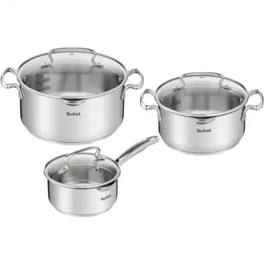 Fabricat din otel inoxidabil de inalta calitate, setul de vase Vesela Tefal G719S674 Duetto Plus este construit pentru a rezista. Fiecare oala si tigaie din set este conceputa pentru a rezista la temperaturi ridicate, asigurandu-le longevitatea si durabilitatea. Constructia din otel inoxidabil face vasele de gatit rezistente la rugina, coroziune si pete, facandu-le usor de curatat si intretinut. Spune-ti la revedere vaselor subtiri de gatit care se indoaie si se deformeaza in timp – cu setul de vase Vesela Tefal G719S674 Duetto Plus, te poti bucura de gatit cu incredere.