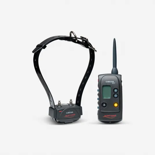 Set zgarda + telecomanda de dresare pentru caine NUM'AXES CANICOM 800, Marime unicaCu o raza de actiune de 800 m pe teren drept, aceasta zgarda este rezistenta la apa. Telecomanda este rezistenta la scurgeri. Posibilitate de a educa 2 caini cu o zgarda suplimentara Zgarda Canicom 800 va corecta comportamentul agresiv al cainelui. a dresa un caine, pana la o distanta de 300 de m, in functie de tipul de teren. Telecomanda Canicom 800 continuta in set poate controla 1 sau 2 zgarde de dresaj. A doua zgarda poate fi adaugata in orice moment.