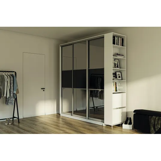 Шкаф купе, Нимфея альба, фасад - 3 П-09 зеркало серебро/лакобель 9005/зеркало серебро
