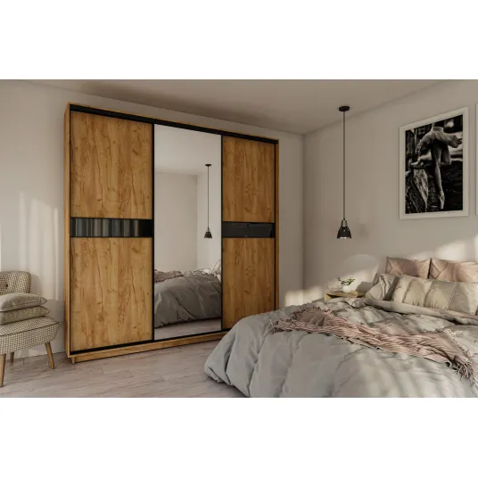 Dulap Cupe 4home, 2 Usi PAL 1Oglinda, Stejar Craft Auriu 2P-07, 230x45x220 cm