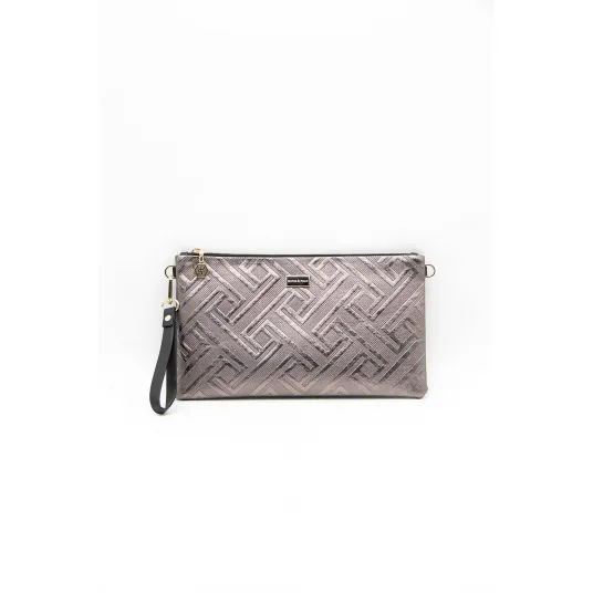 SilverPolo, Geanta cu model geometric si bareta pentru incheietura, Argintiu inchis