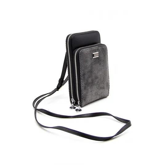 SilverPolo, Geanta de piele ecologica pentru telefon, Argintiu inchis
