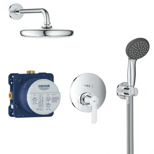 Sistem de dus Grohe Get 25220001, incastrat, monocomanda, 210 mm, para de dus, furtun, suport, crom