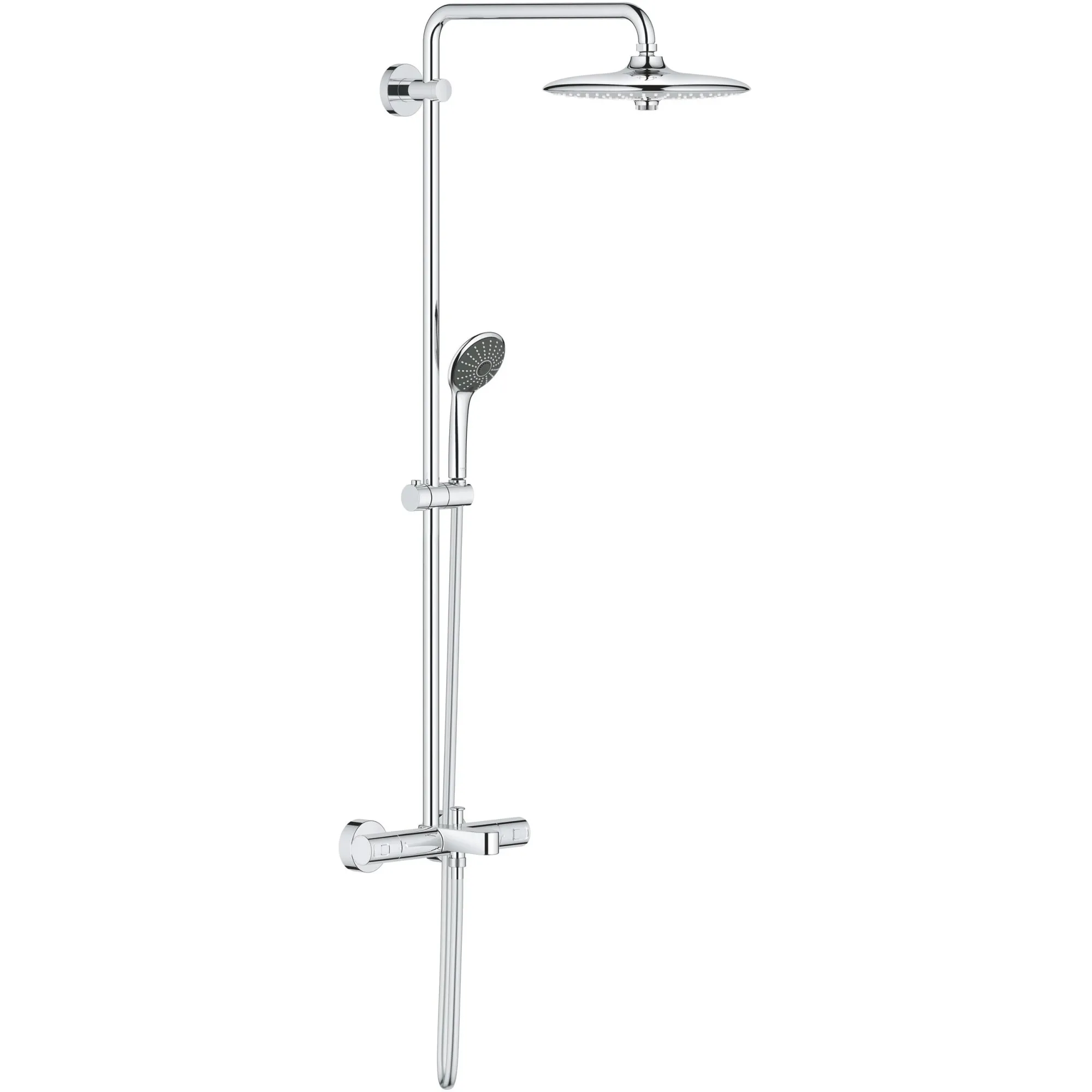 Sistem de dus Grohe Vitalio Joy 27860001, 1/2, aparent, pipa cada, termostat, 260 mm, 3 pulverizari, anti-calcar, Crom
