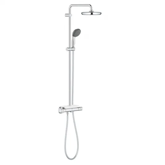 Sistem de dus termostatic Grohe 26814001 Vitalio Start 210, cabina de dus Vitalio Start 210, dus de mana cu dubla functie Vitalio Start 100, raft suport, crom (26814001)