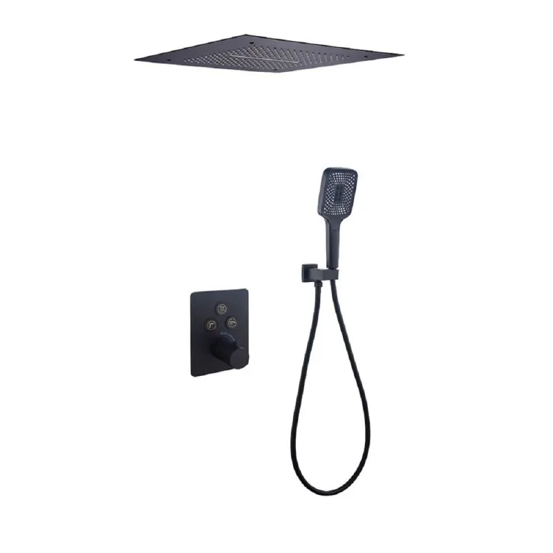 Sistem dus, dus tip ploaie si cascada cu montaj incastrat in tavan, Negru Mat, baterie incastrata cu termostat, Amigo