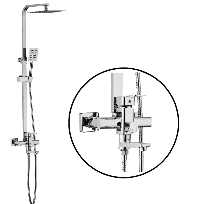 Sistem dus, montaj pe perete, 3 functii, dus tip ploaie, dus de mana, pipa cada rotativa, alama, Crom, Optima