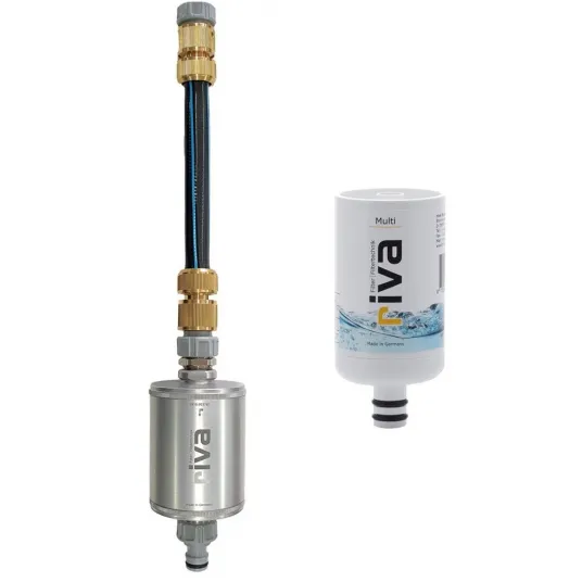 Sistem filtrare pentru apa potabila riva Multi EXPLORER cu carcasa din aluminiu, cartus impotriva Legionella si accesorii de instalare, Potrivit pentru rulote, Argintiu