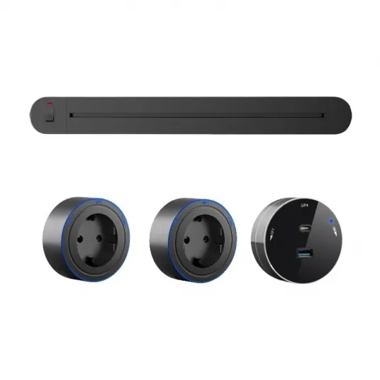 Sistem priza tip rail cu intrerupator, 3 adaptoare mobile, montare pe perete, capacitate maxima 8000W, aluminiu, 40x8.2x2cm