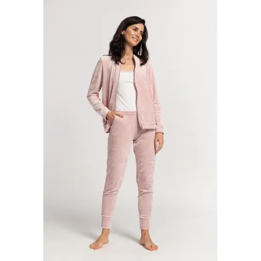 Sofiaman, Bluza de pijama din amestec de modal catifelat cu fermoar, Roz, XL