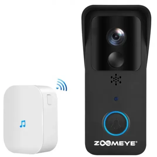 Sonerie inteligenta ZoomEye® Pro 2.4GHz/5GHz Dual-band WiFi cu camera video 2MP FullHD, Night Vision, senzor de miscare IR, comunicare bidirectionala, 52 de tonuri, acumulatori 5200 mAh inclusi, notificari in timp real prin aplicatia Tuya
