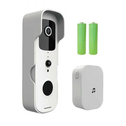 Sonerie video cu emitator, Wireless, Full HD 1080p, Smart compatibila Tuya, Alexa, Google Assistant, Nightvision, IP54, waterproof, baterii incluse culoare alb