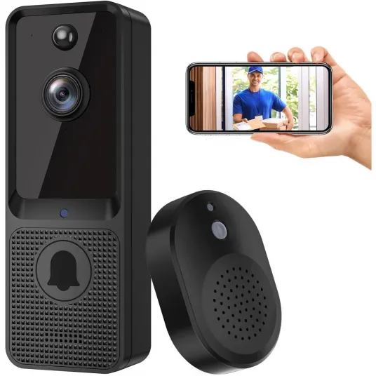 Sonerie video inteligenta, VINTOPВ®, Wireless, Aplicatie smart, Senzor IR, Camera 720p, Vedere nocturna, Interfon, Negru