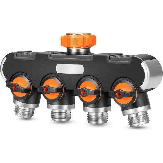 Splitter de furtun 4 cai, JENUOS, aliaj de zinc, negru/portocaliu, conexiune 3/4Splitter de furtun 4 cai, JENUOS, aliaj de zinc, negru/portocaliu, conexiune 3/4223602730223602730