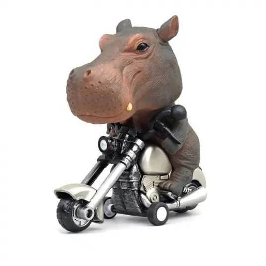 Statueta motocicleta animal, model Harley, hipopotam maro, 12x11x6cm, set de colectie