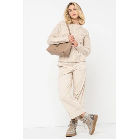 Stefanel, Pulover supradimensionat din amestec de lana si lana alpaca, Bej, S