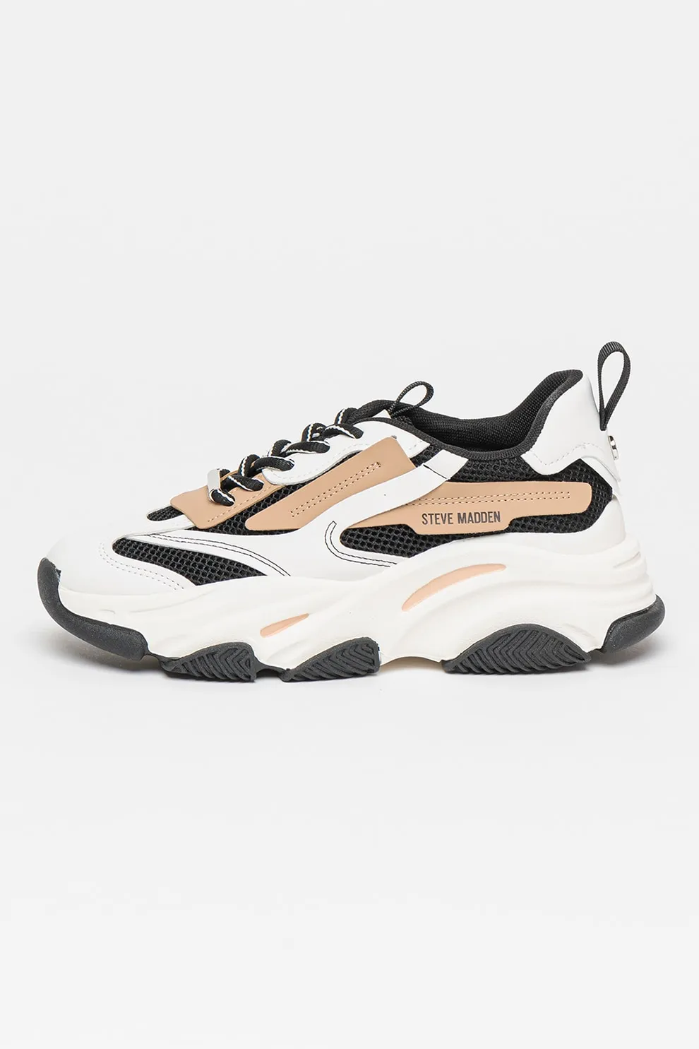 Steve Madden, Pantofi sport cu insertii de plasa Possesion, Negru, Alb, Bej, 40