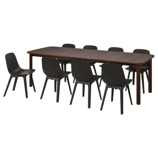 IKEA STRANDTORP / ODGER Masa cu 8 scaune, maro/antracit, 150/205/260 cm