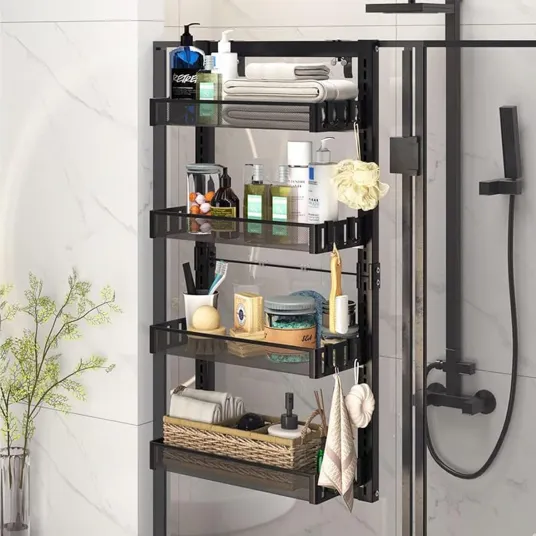 Suport de baie JFYU, cu 6 niveluri, ajustabil, montare pe perete sau suspendat, metal, negru