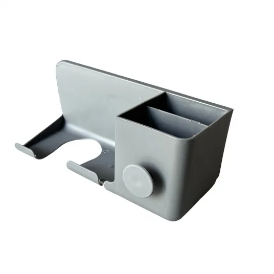 Suport de perete pentru uscator de par, organizator cu compartimente, rezistent la apa, sarcina max 10kg, gri
