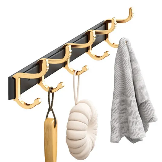 Suport din Aluminiu pentru Prosoape si Paltoane, 5 Carlige Mobile, Fara Gaurire, Aur NegruSuport din Aluminiu pentru Prosoape si Paltoane, 5 Carlige Mobile, Fara Gaurire, Aur Negru701911870701911870