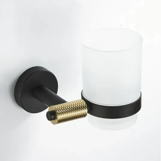 Suport din metal pentru periuta de dinti cu accent auriu cu model.