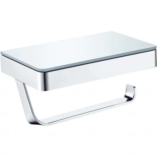 Suport hartie igienica Aquasanit CONCEPT, alama cromata, crom lucios si ABS alb cu etajera din sticla alba, montaj cu dibluri si suruburi