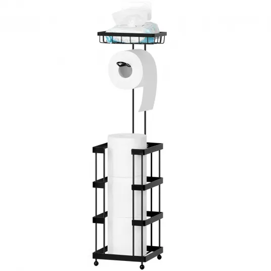 Suport Hartie Igienica, BYONDSELF®, cu Raft Depozitare si Raft Servetele Umede, Patrat, 15 x 15 x 62 cm, Metal, NegruSuport Hartie Igienica, BYONDSELF®, cu Raft Depozitare si Raft Servetele Umede, Patrat, 15 x 15 x 62 cm, Metal, Negru223175446223175446