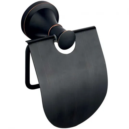 Suport hartie igienica cu aparatoare, neagru, cu capac rabatabil. Suportul de hartie igienica cu aparatoare este conceput pentru rola mica (universala) de hartie igienica, avand un capac rabatabil ce asigura un spatiu igienic pentru rola de hartie. Colectie: Luxury. Material: Otel Inoxidabil, suport din aliaj zinc-crom. Finisaj: Negru mat cu insertii vintage. Domeniu de utilizare: spatii sanitare. Usor de curatat si de intretinut. Asigura un design estetic placut. Montaj simplu. Lungimea suportului este de 14.2 cm, iar adancimea acestuia de 8.3 cm.