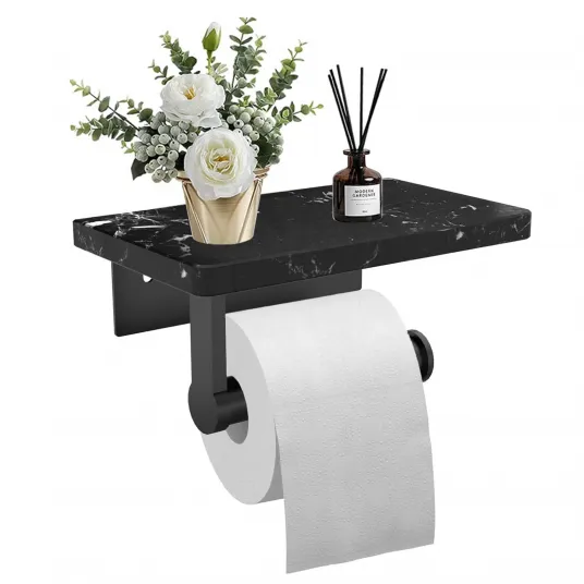 Suport hartie Igienica, JFYU, cu Raft din Marmura, Design Modern si Fara Perforare, Accesorii Multifunctionale, Pentru Casa, Magazin, Bar, Hotel, Negru