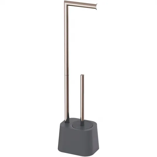 Suport multifunctional AQUASANIT seria Amy QV089GR, cu perie WC si suport hartie igienica, Cromat/Gri