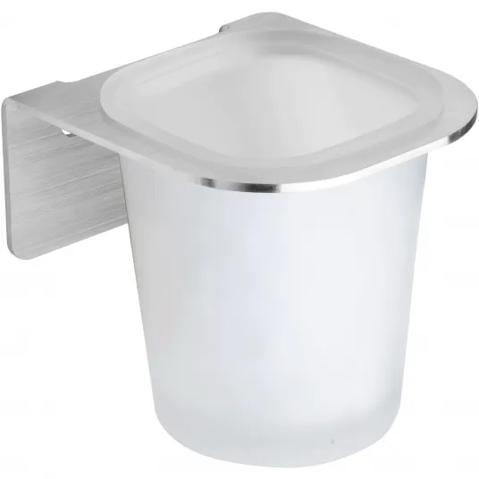 Suport pahar Aquasanit SKYLINE, otel inoxidabil, pahar din sticla mata, finisaj crom mat, montaj cu banda dublu adeziva (inclusa)