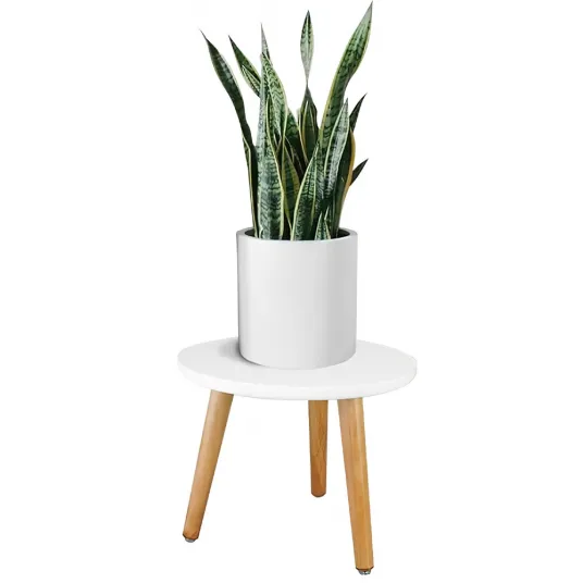 Suport pentru ghiveci flori, LEOKORВ®, Mid-century modern, mic rotund lateral masa de plante, pentru plante de interior, Lemn, Natural/Alb, Inaltime 22 cm, latime 28 cm