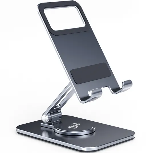 Suport pentru telefon si tableta, Aliaj de aluminiu, Rotativ, reglabil la 360 de grade, HouDeOS®, Gri