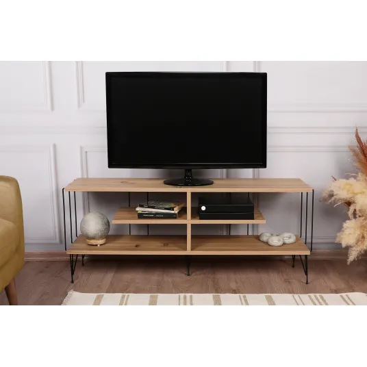 imbunatatiti ambianta camerei dvs. de zi cu suportul nostru de televizor uimitor. Realizat cu cea mai mare precizie, aceasta piesa de mobilier este conceputa pentru a adauga o nota de eleganta in casa dvs. Conceptul sau modern si inedit, combinat cu o nota industriala, il face un accesoriu perfect pentru orice decor contemporan.