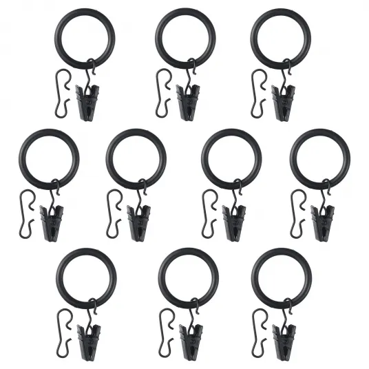 IKEA SYRLIG Inele perdea cu clema si carlig, negru, 25 mm