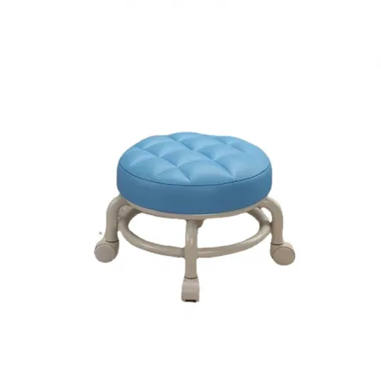 Taburet, Metal/Piele ecologica, 26 x 34 x 8cm, Bej/Albastru