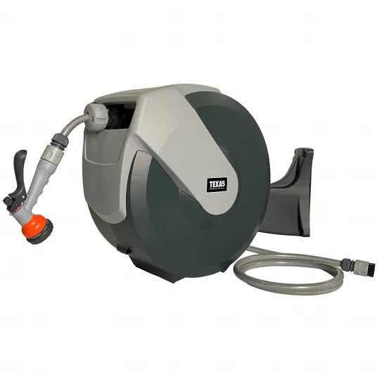 Tambur autoretractabil + furtun de gradina 25 m 1/2 Texas, furtun 25 m 1/2, suport rotativ de perete, include pistol de stropit 7 functii + conectoriTambur autoretractabil + furtun de gradina 25 m 1/2 Texas, furtun 25 m 1/2, suport rotativ de perete, include pistol de stropit 7 functii + conectori222777531222777531