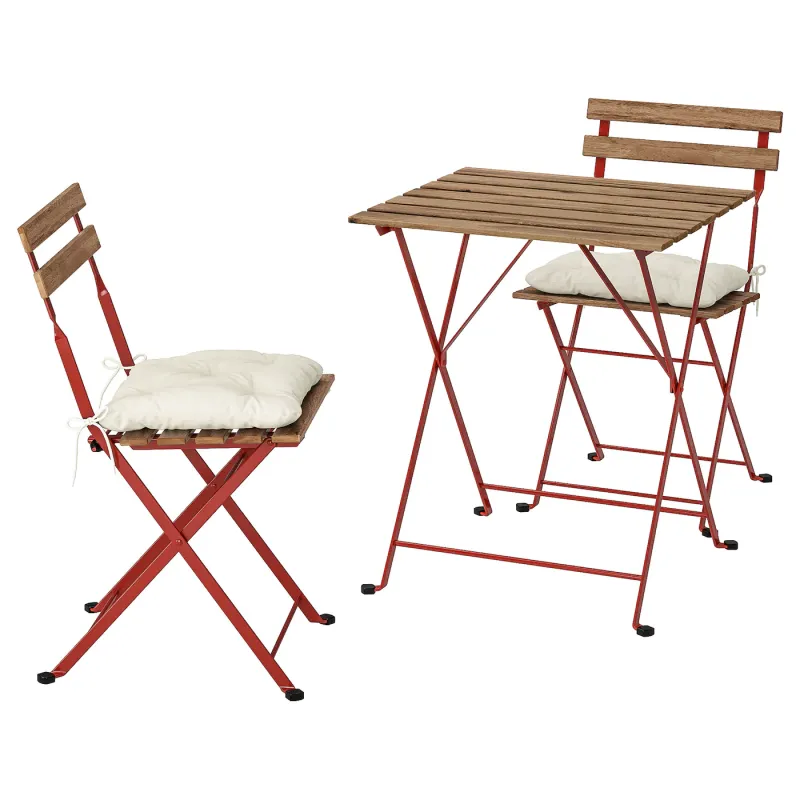 IKEA TARNO Masa+2 scaune exterior, rosu/maro deschis vopsit/Kuddarna bej