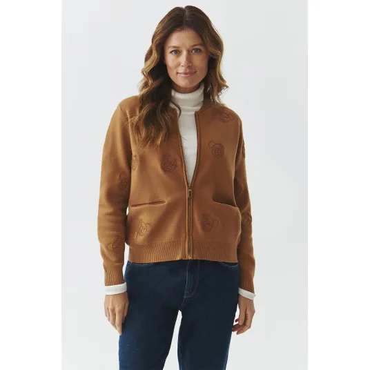 Tatuum, Cardigan cu detalii in relief, Caramel, XL